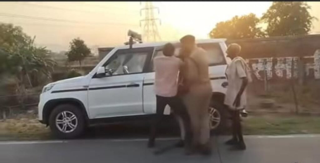 धक्का-मुक्की का नज़ारा: आरोपी को गाड़ी में बैठाने में माड़ा पुलिस के पसीने छूटे, थाना प्रभारी खुद उतरे मैदान में