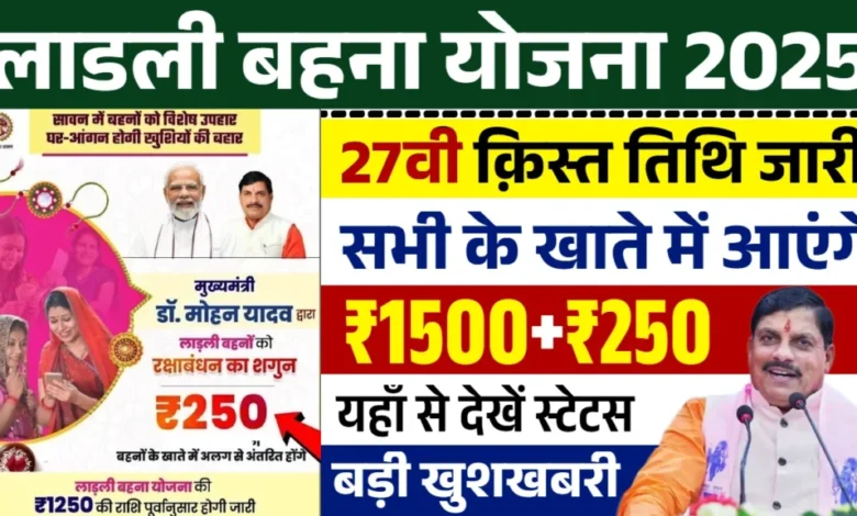 लाड़ली बहना योजना की 27वीं किस्त इस दिन होगी जारी – जानिए तारीख, लाभार्थियों के खाते में कितनी राशि आएगीभोपाल | एमपी लाइव न्यूज़ 24 ब्यूरो