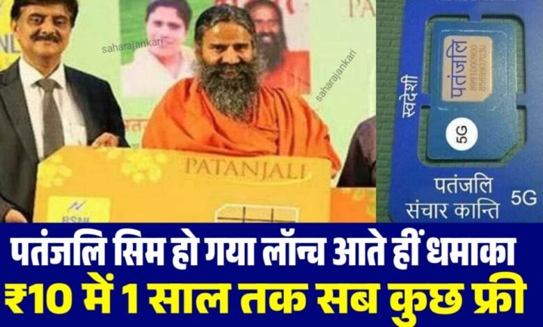 Patanjali Sim Card Launched : अब सिर्फ ₹10 में मिलेगा 1 साल तक फ्री कॉलिंग और इंटरनेट डेटा!