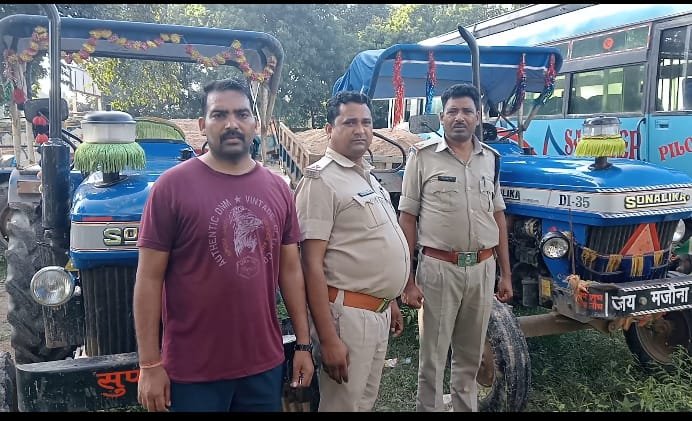 तस्वीर में पुलिस टीम जब्त किए गए ट्रैक्टरों के साथ नजर आ रही