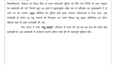 पशु तस्करों के विरुद्ध रीवा जोन पुलिस की अब तक की सबसे बड़ी कार्रवाई– संगठित तस्करी नेटवर्क पर कसा शिकंजा, भारी संख्या में पशु बरामद, कई गिरफ्तार